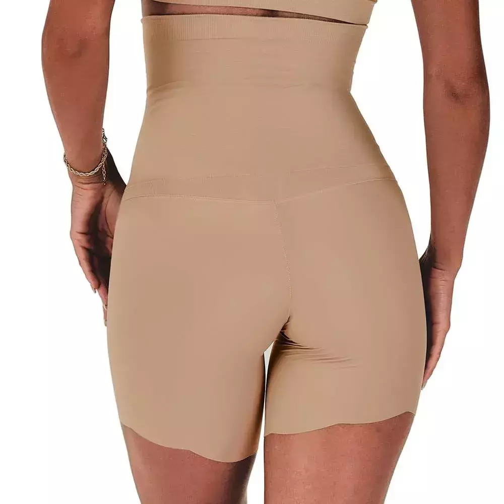 Bermuda Modeladora Alta Invisible Laser cintura extra com forro de algodão. Esta peça conta com compressão no abdômen formada por microcanelados que em combinação ao elastano suavizam a linha da cintura promovendo compressão uniforme e proporcionando o efeito chapa barriga. Este produto conta com forro de algodão. O diferencial desta peça esta no acabamento da bermuda em tecido muito leve (poliamida com elastano), repare que o acabamento da bermuda é realizado em corte a laser em formato ondulado, uma tecnologia que permite a invisibilidade da peça quando usado com roupas justas. O acabamento ondulado garante também que a peça não enrole durante o uso. A modelagem da bermuda modeladora também é uma aliada ao conforto, pois evita o atrito entre as pernas. A Modelagem Bermuda também é especialmente pensada para quem deseja máximo conforto e liberdade no uso de vestidos longos, peças de tecidos leves ou mais justas.