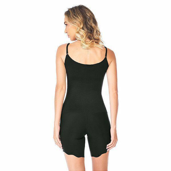 Body Modelador Bermuda chapa barriga sem bojo com abertura higiênica. Esta peça conta com alças reguláveis para ajustar-se ao corpo. Para promover praticidade e funcionalidade, oferece abertura higiênica no entrepernas. Outro diferencial esta no acabamento da bermuda em tecido muito leve, repare que o acabamento da bermuda é realizado em corte a laser em formato ondulado, uma tecnologia que permite a invisibilidade da peça quando usada com roupas justas. O acabamento ondulado garante também que a peça não enrole durante o uso. A modelagem do body bermuda também é uma aliada ao conforto, pois evita o atrito entre as pernas. Um produto especialmente pensado para quem deseja máximo conforto e liberdade no uso com vestidos longos, peças de tecidos leves ou mais justas. A Bermuda conta com compressão no abdômen formada por microcanelados que em combinação ao elastano suavizam a linha da cintura promovendo compressão uniforme e proporcionando o efeito chapa barriga.