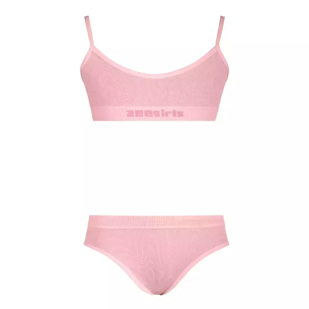 Conjunto infantil de top e calcinha sem costura com desenhos em jacquard delicado, que oferece efeito único na combinação de cores.