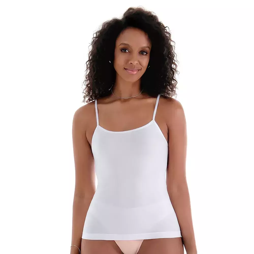 A Regata Básica sem costura É uma peça básica e essencial, ideal para ser usada à mostra com calças jeans, saias estampadas ou por baixo de camisas ou blazers.