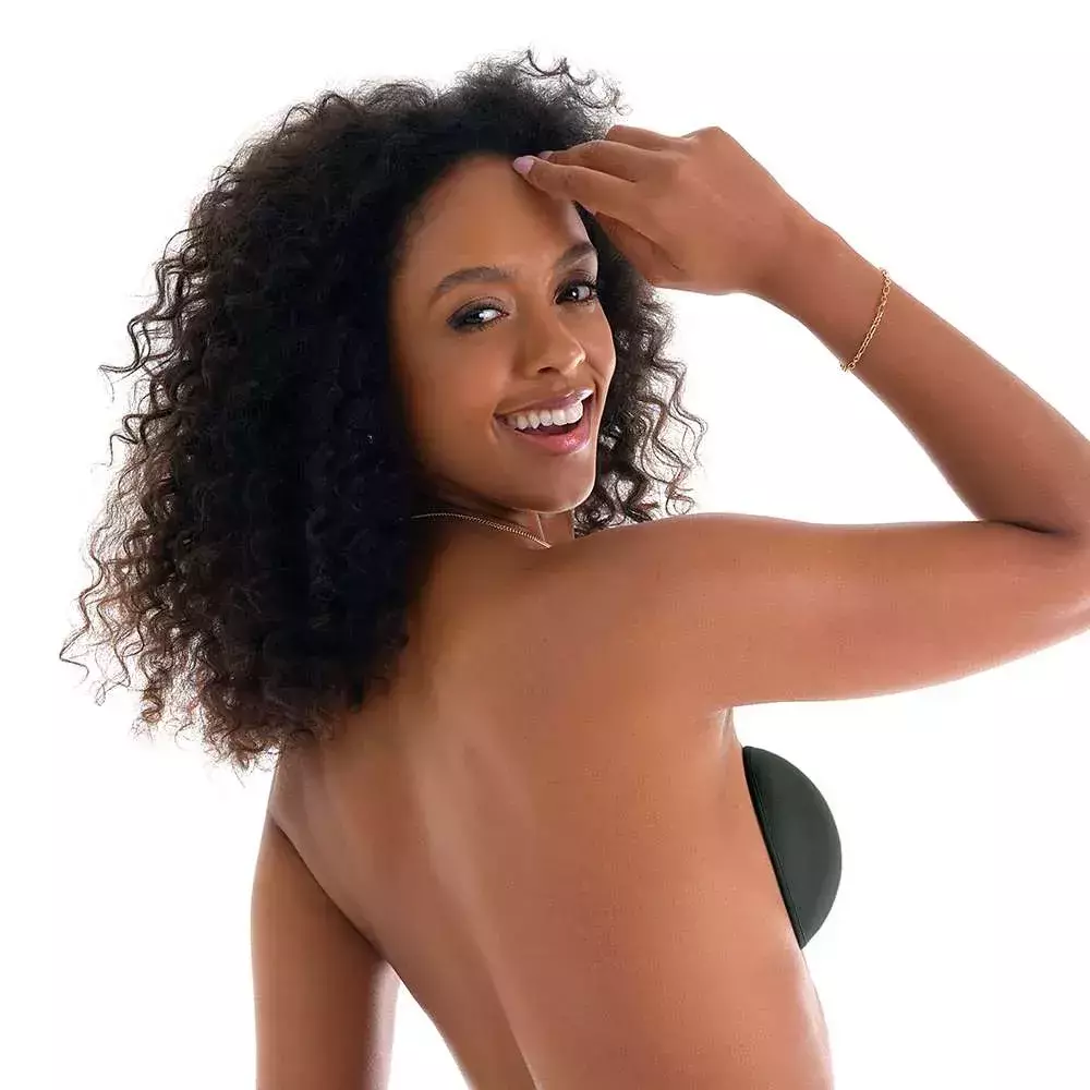 Sutiã Adesivo Invisível, funciona com uma cola que adere ao seio sem necessitar de fecho nas costas. Por isso, ele é perfeito para ser usado com peças decotadas, cavadas e costas nuas. Especial para vestidos de festas, mas também é super prático para o dia-a-dia. Na parte da frente conta com fecho regulador que promove aproximação dos seios e aquele 'UP' no visual. Não é descartável, a durabilidade é proporcional aos cuidados com a peça. Lavar com água morna, sabão neutro, secar à sombra e recolocar a película protetora para usar mais vezes.